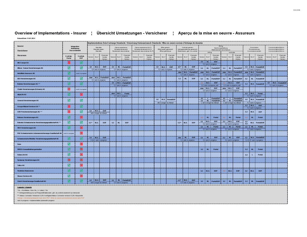 - Untenstehend die Auflistung welcher Versicherer welche Services und
